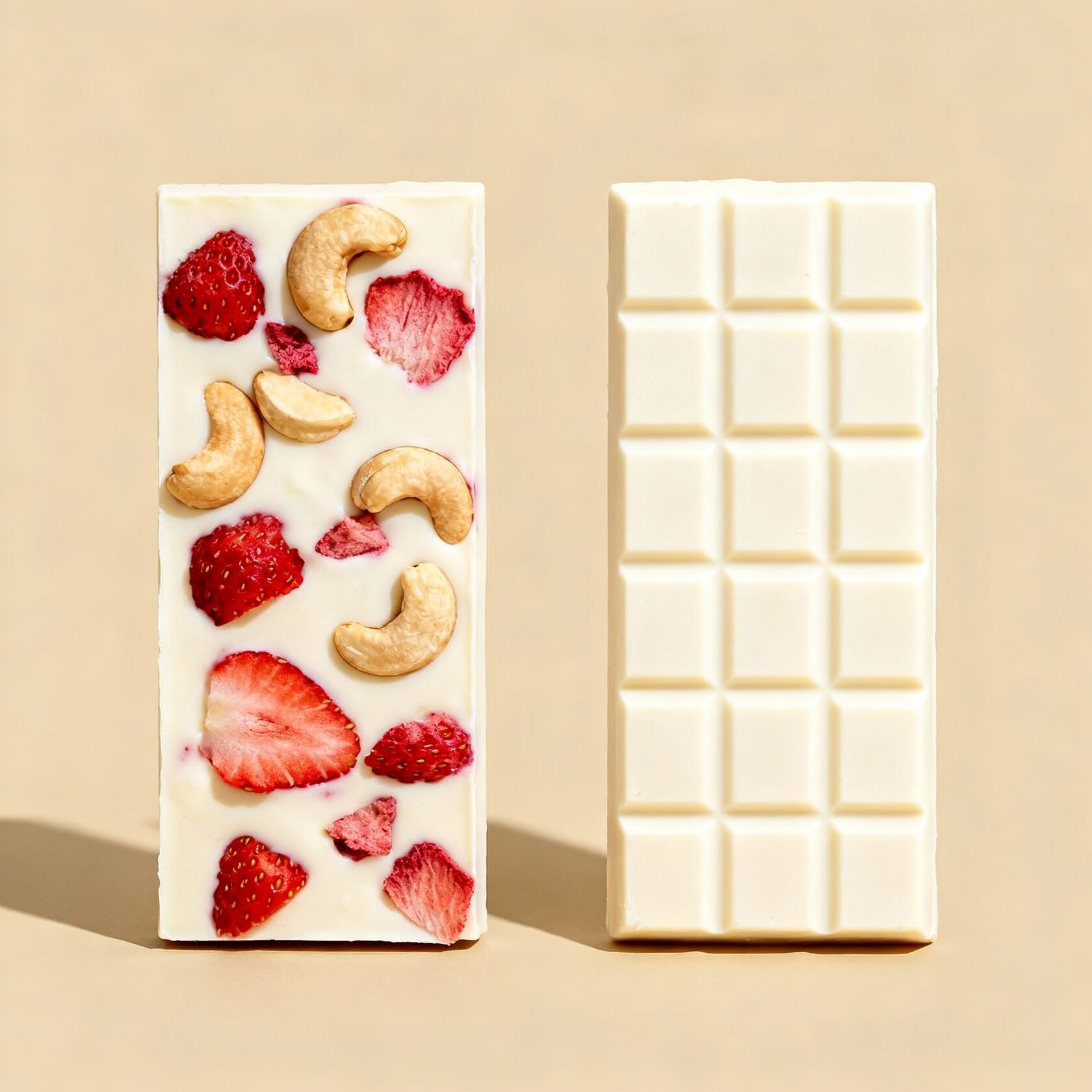 Белый шоколад 25,9% с кешью и сублимированной клубникой