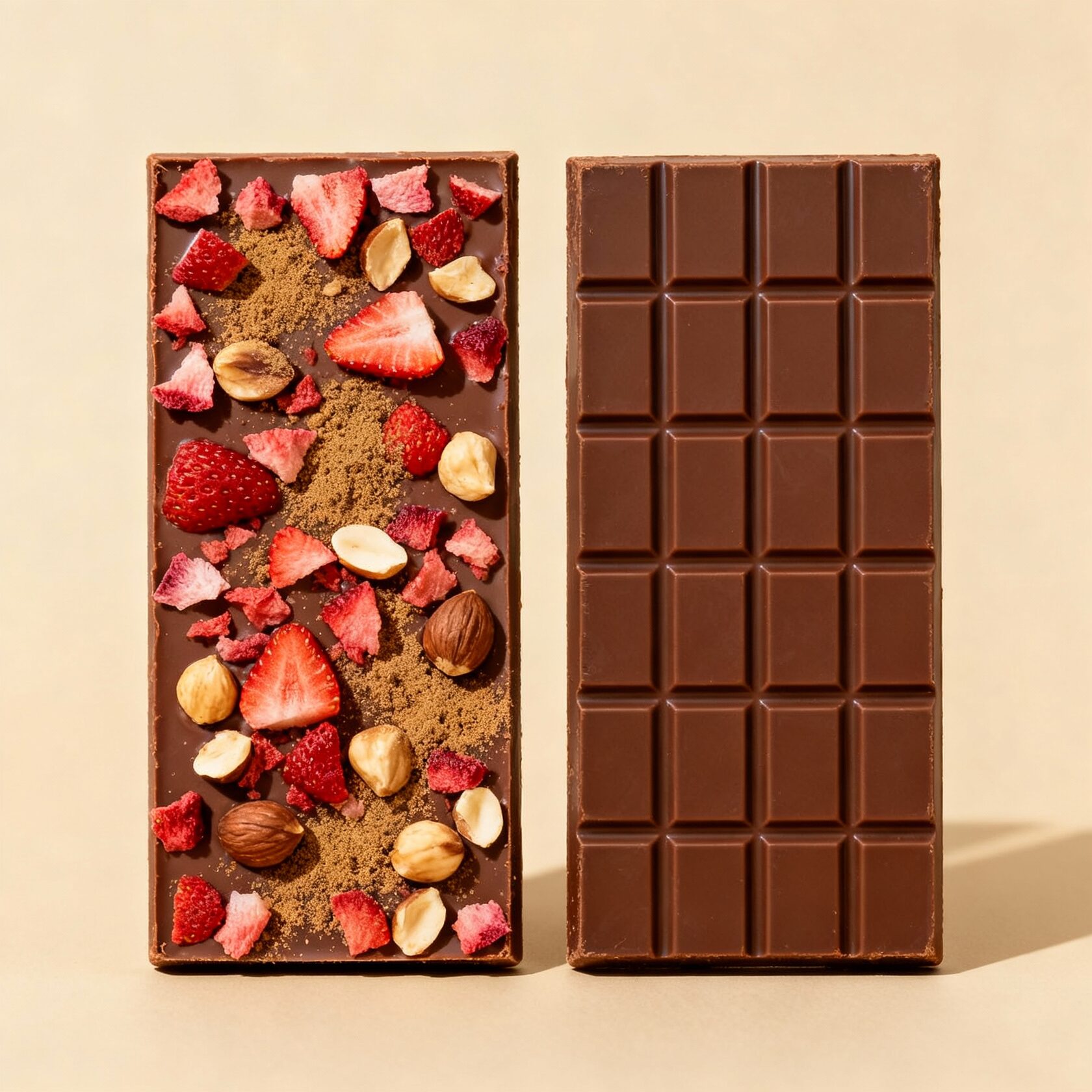 с фундуком, сублимированной клубникой и мускатным орехом