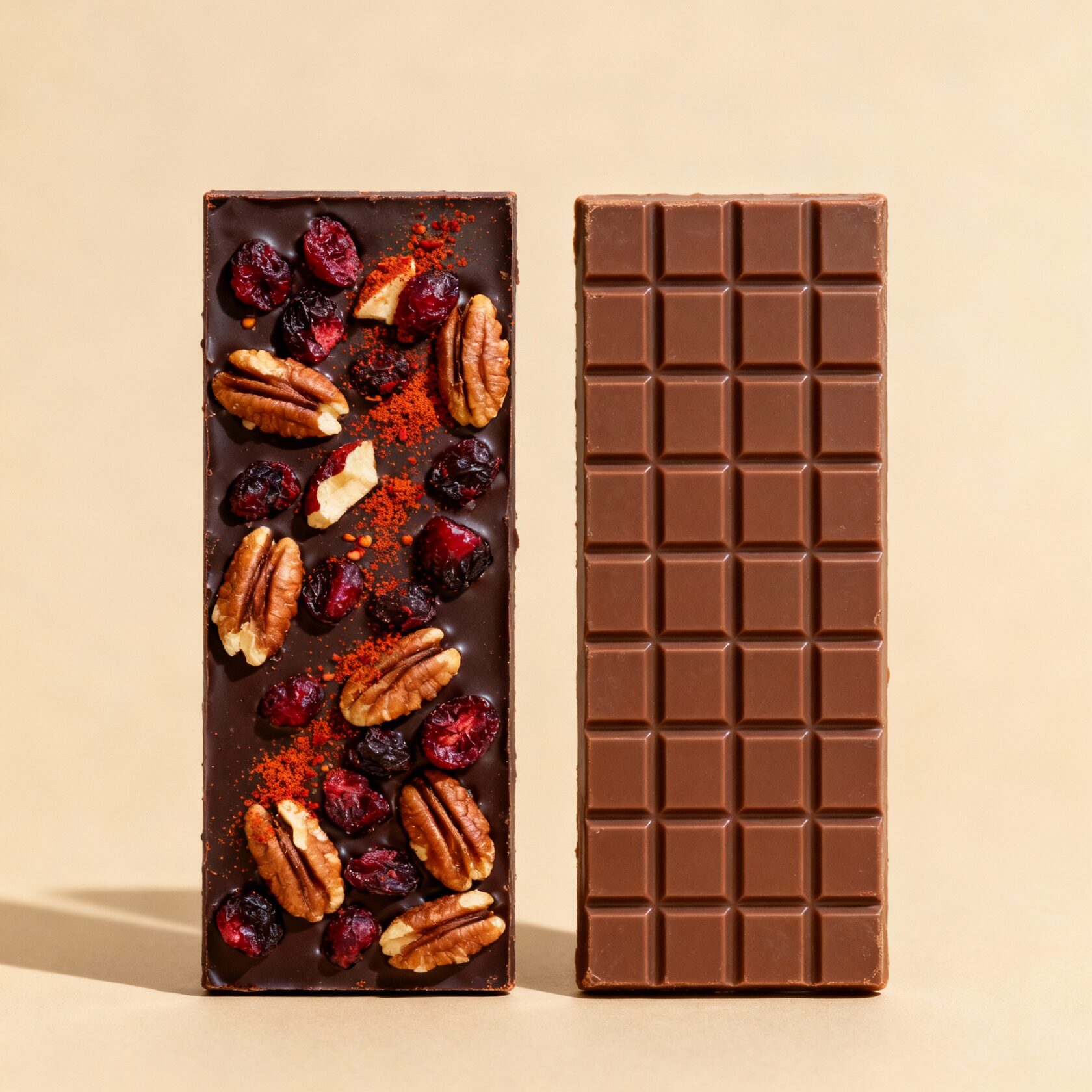 Темный шоколад 54,5 % с вяленой клюквой, пеканом и перцем чили